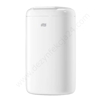 - Funkcjonalny kosz na śmieci Tork, kolor biały. Możliwość montażu do ściany.