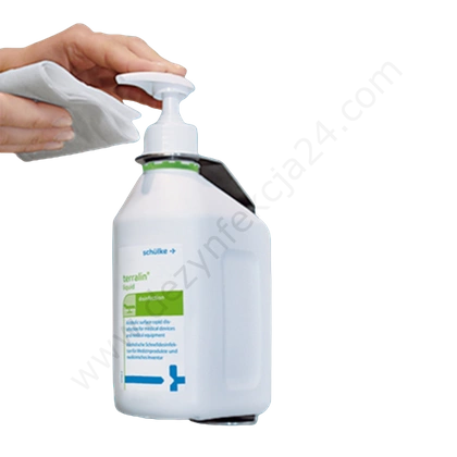 - Metalowy uchwyt ścienny do butelek 500 ml. W zestawie pompka.