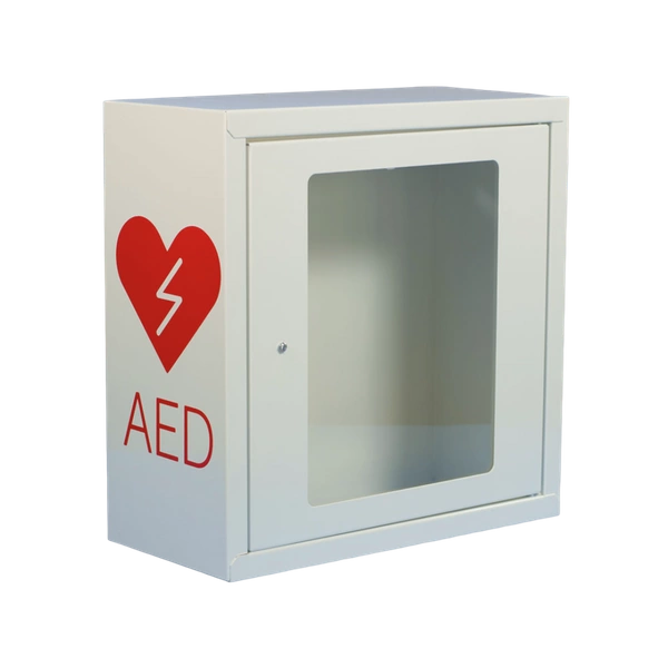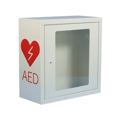Szafka na defibrylator wyposażona w zamek magnetyczny ułatwiający dostęp do defibrylatora oraz okienko ułatwiające kontrolę zawartości. Wytrzymała konstrukcja jest odporna na korozję.