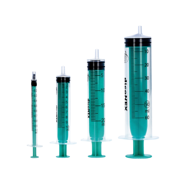 Strzykawka trzyczęściowa 10 ml Luer, zielony tłok (100 szt.) - dicoNEX