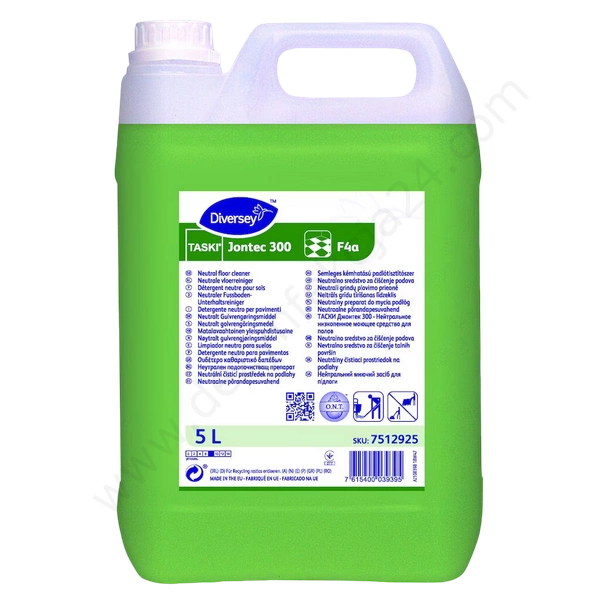 Taski Jontec 300 jest nisko pieniącym preparatem do codziennego mycia twardych, wodoodpornych podłóg. preparat szybko i skutecznie usuwa zanieczyszczenia z mytych powierzchni. Dzięki zawartości technologii O.N.T., neutralizuje nieprzyjemne zapachy.