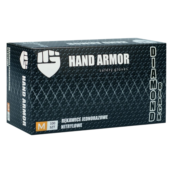 Hand Armor - Wytrzymałe rękawice nitrylowe, bezpudrowe - Czarne (100 szt.)