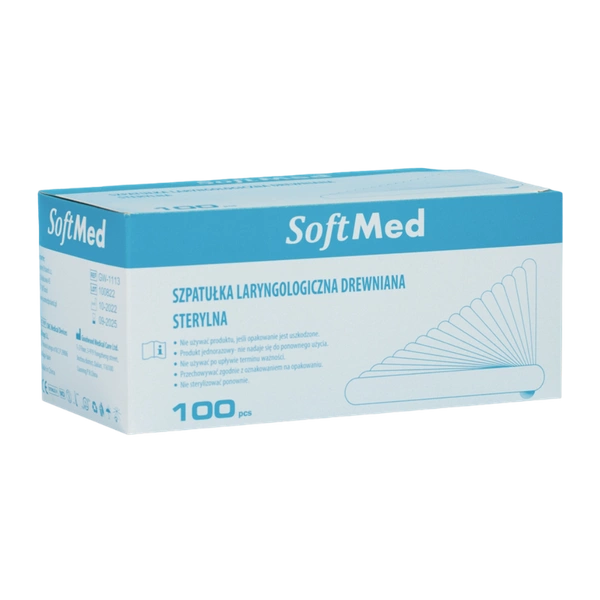 Szpatułka laryngologiczna drewniana (100 szt.) - sterylna - Softmed