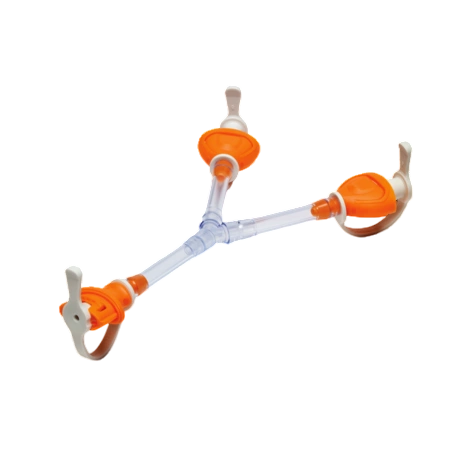 Złącze Y Renasys może być użyte do podłączenia jednej lub dwóch ran przez dwa miękkie porty i/lub dreny Renasys do jednej pompy.