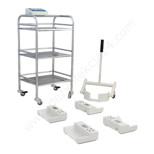 Wyposażona w wózek transportowy z zamontowanym wyświetlaczem. Posiada cztery moduły ważące połączone przewodami, które umożliwiają podłożenie wagi pod łóżko o dowolnym rozstawie kół. Do unoszenia kół służy specjalny podnośnik - dla kół o średnicy 100-200 mm.