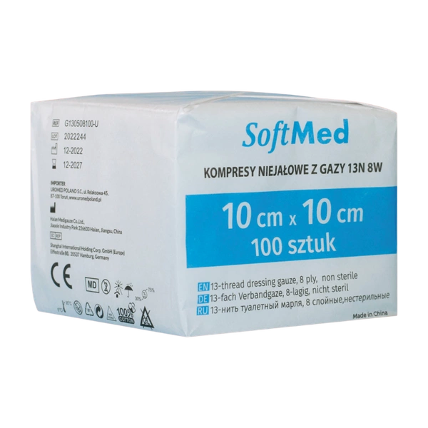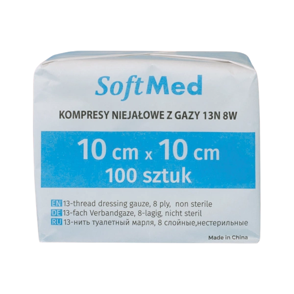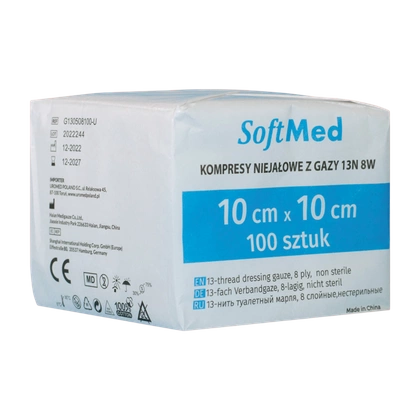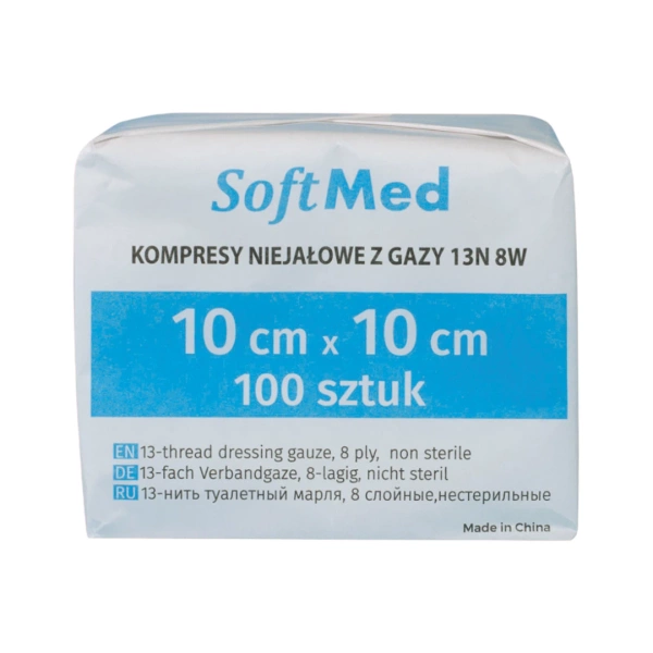 Kompresy gazowe 13. nitkowe 8. warst. 10 x 10 cm (100 szt.) - SoftMed