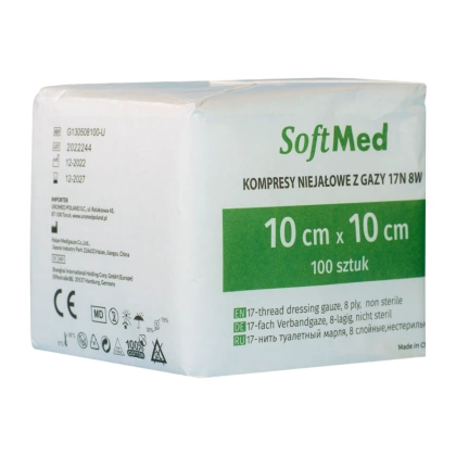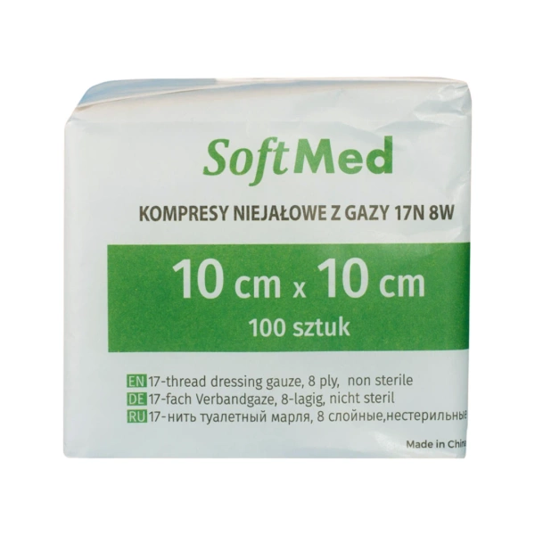 Kompresy gazowe 17. nitkowe 8. warst. 10 x 10 cm (100 szt.) - SoftMed