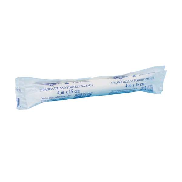 Opaska wykonana z przędzy z włókien poliestrowych lub wiskozowych w postaci taśmy dzianej nawiniętej równomiernie w zwój. Produkt służy do mocowania i podtrzymywania opatrunku, nie należy stosować go bezpośrednio na ranę. Lekka konstrukcja dba o odpowiedni przepływ powietrza, dzięki czemu opaska jest przyjazna dla skóry.