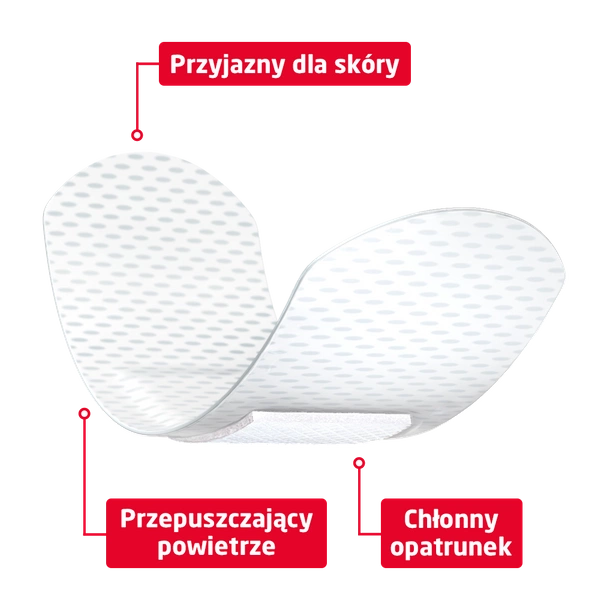 - Oddychający opatrunek na drobne rany, o maksymalnym komforcie. Bardzo miękki i chłonny, nie klei się do rany.