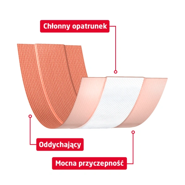 - Mocny opatrunek do stosowania na drobne rany. Zapewnia bezpieczne mocowanie.