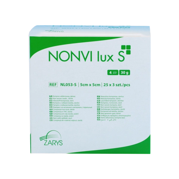 Kompresy włókninowe NONVI lux S, jałowe 5 x 5 cm (25 x 3 szt.)