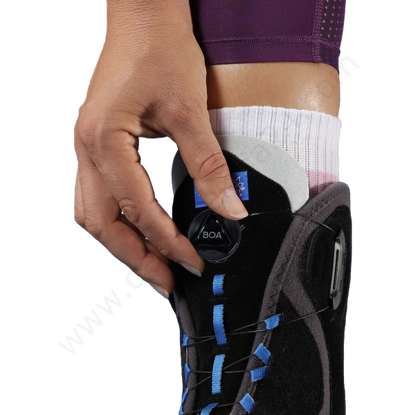 - Stabilizująca orteza unieruchamiająca staw skokowy. Posiada system dopasowania BOA®. Obwód kostki 19-21 cm
