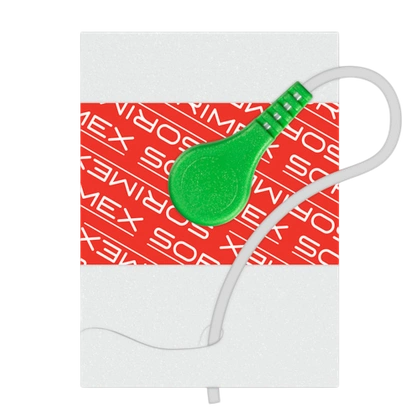 Posiada nacięcie umożliwiające zamocowanie elektrody i przewodów w sposób trwały i komfortowy dla pacjenta.