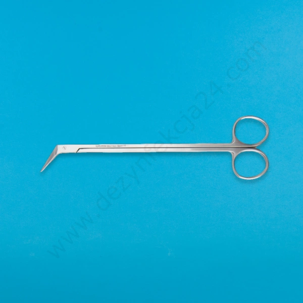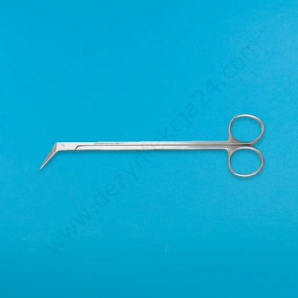 - precyzyjne nożyce naczyniowe ze spiczastymi, kątowymi końcówkami. Do preparowania i cięcia tkanek. Wielokrotnego użytku, ze stali nierdzewnej.