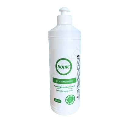 - Bezbarwny żel transmisyjny do USG 500 ml do diagnostyki USG i Doppler.
