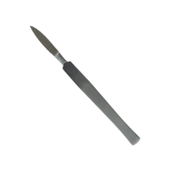 - Precyzyjny nóż chirurgiczny do cięcia tkanek i szwów podczas zabiegów chirurgicznych. Wielokrotnego użytku, ze stali nierdzewnej.