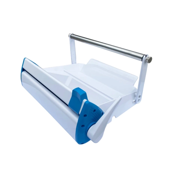 Precyzyjne odcięcie rękawa następuje za pomocą dwustronnego noża, którego wzmocnione ostrza nie wymagają wymiany nawet przy intensywnej eksploatacji.