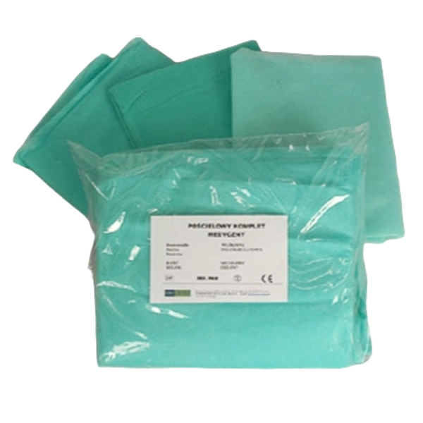 Flizelinowa pościel (zielona) jest niejałowa, przeznaczona do jednorazowego użytku.