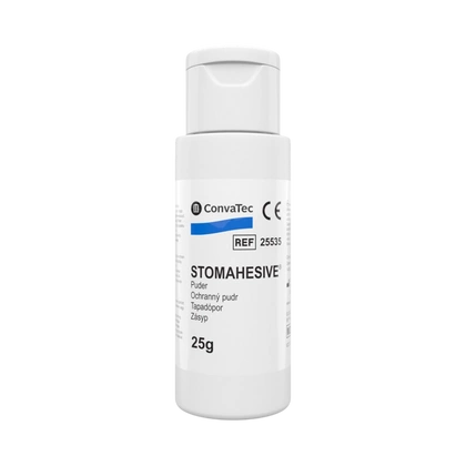 - Puder o właściwościach łagodzących, pochłania wilgoć i chroni skórę. Do pielęgnacji stomii (kolostomii, ileostomii lub urostomii).