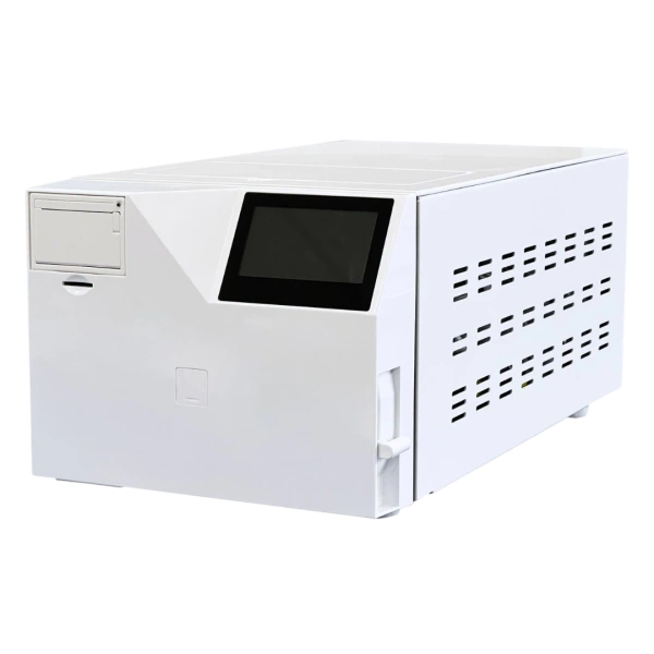 - Autoklaw o pojemności 3L do sterylizacji narzędzi, z wbudowaną drukarką termiczną i portem karty SSD. Posiada 4 programy pracy i 2 testowe. Jeden zbiornik na wodę.