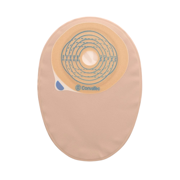 - Beżowy worek stomijny z filtrem węglowym. Posiada okienko do kontroli stomii i zawartości worka.