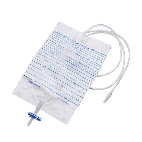 • Worek na mocz z elastycznym drenem i uniwersalną końcówką. Posiada zawór typu T i pasek SUP ułatwiający mocowanie worka.