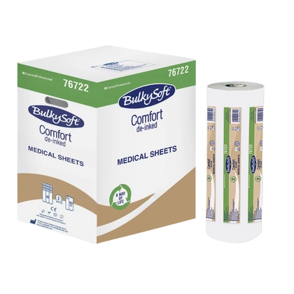 Ekologiczny 2-warstwowy podkład medyczny wyrabiany z celulozy i celulozy z recyklingu. Jego struktura z delikatnymi tłoczeniami zwiększa chłonność. Podkład Bulky Soft jest miękki i delikatny dla skóry.
