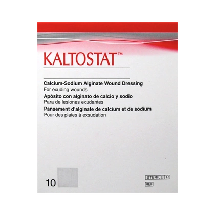 Sterylny opatrunek Kaltostat wykonany został z włókien alginianu wapniowo-sodowego.