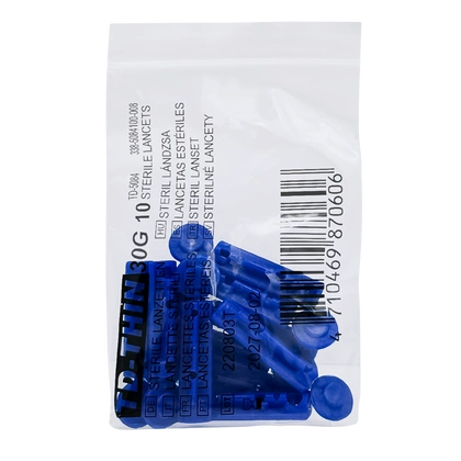 - Sterylne lancety o cienkim, szlifowanym ostrzu, które pozwala na niemal bezbolesne nakłucie. Odpowiednie do większości nakłuwaczy dostępnych na rynku.