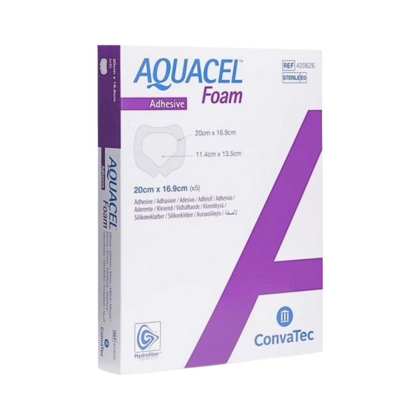 Opatrunek AQUACEL™ Foam to hydrowłóknisty, piankowy opatrunek na kość krzyżową. Stosowany do ran ostrych i przewlekłych, z umiarkowanym wysiękiem.