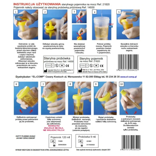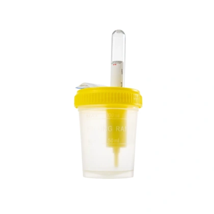 - Sterylny pojemnik na mocz do próżniowego pobierania moczu. Zapewnia sterylność procesu i wiarygodność badania.