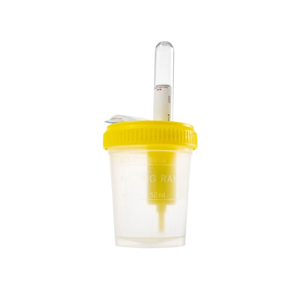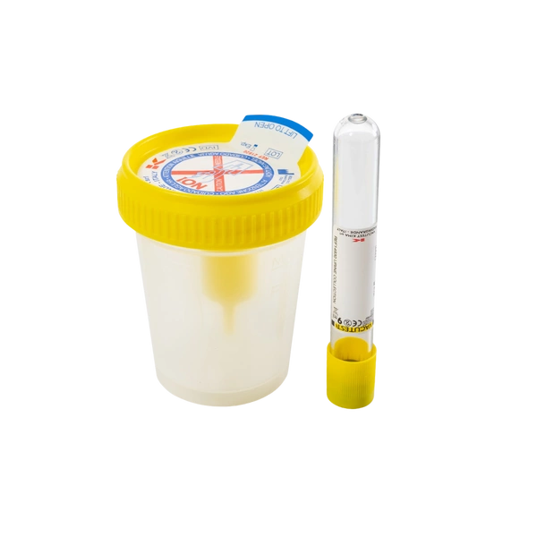 • Sterylny pojemnik na mocz do próżniowego pobierania moczu. Zapewnia sterylność procesu i wiarygodność badania.