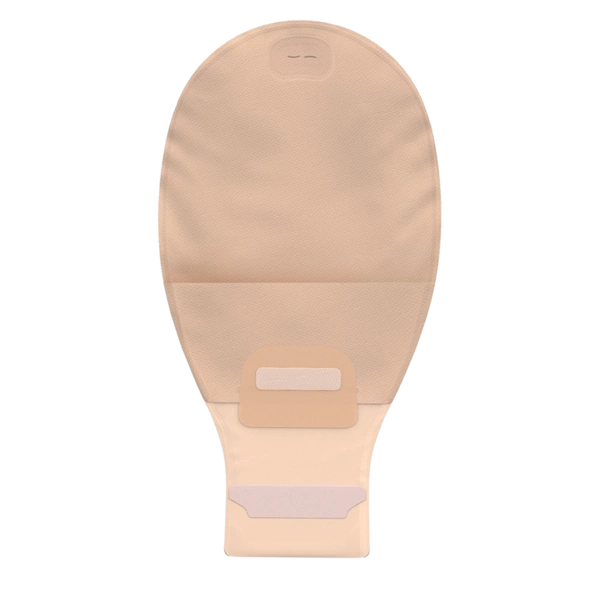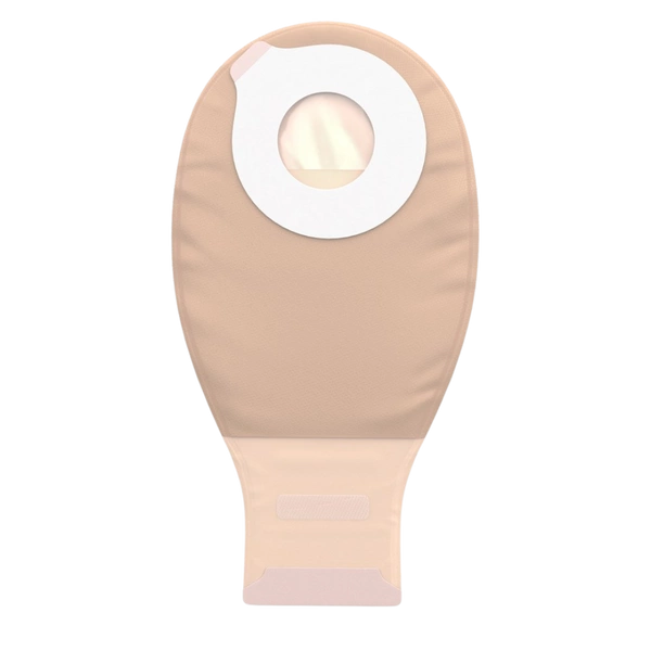 Dwuczęściowy worek stomijny do systemu Esteem Synergy+ z łączeniem klejowym (adhesive coupling) – bez twardego, mechanicznego pierścienia. Taka konstrukcja zapewnia niski profil, mniejsze odstawanie pod ubraniem i komfort noszenia przy jednocześnie pewnym, szczelnym mocowaniu do płytki.