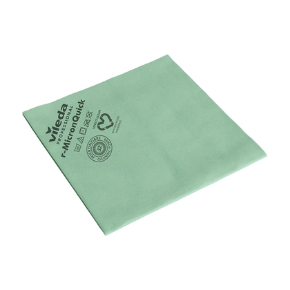 r-MicronQuick to profesjonalna ściereczka z mikrofibry do sprzątania na sucho, wilgotno i mokro, zaprojektowana do pracy w standardach higienicznych placówek medycznych, HoReCa oraz obiektów o podwyższonych wymaganiach. Wykonana nawet w 70% z mikrowłókien z recyklingu, skutecznie czyści mikroskopijne struktury i usuwa do 99,99% wirusów i bakterii wyłącznie przy użyciu wody.